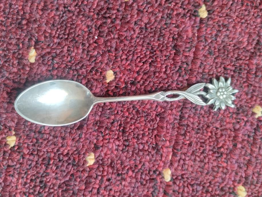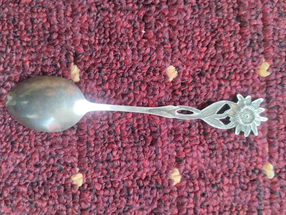 Žlica za šećer vintage posrebrena s drškom od cvjetnih detalja u secesijskom stilu. Duljina 11,7 cm. Vrlo lijepo stanje. Nepotpisano.