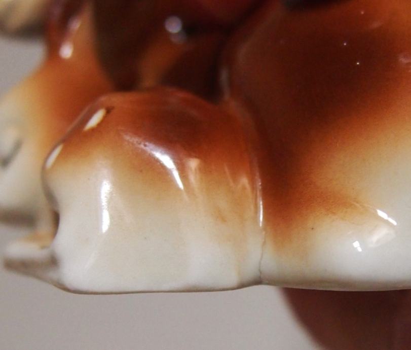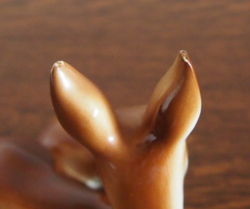 Porculanska figura stara preko 40 godina. Na donjem rubu je površinska napuklina, manje oštećenje je na vrhovima ušiju, vidljivo na slikama.