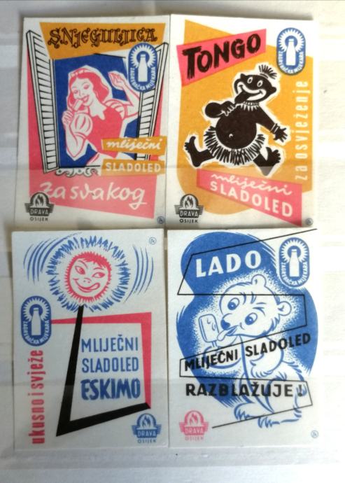 Drava - 4 naljepnice za kutije šibica izvanredno dobro očuvane.