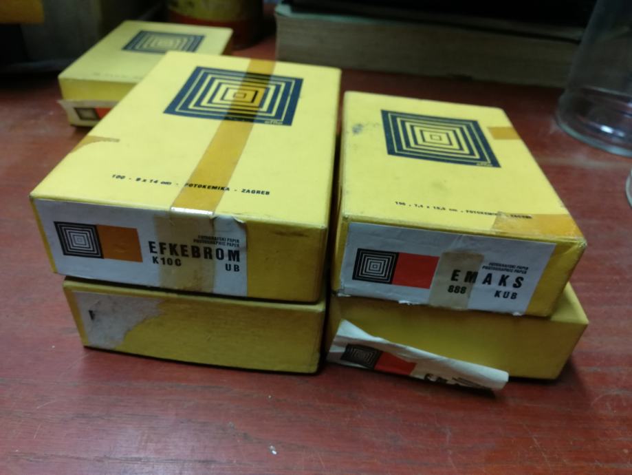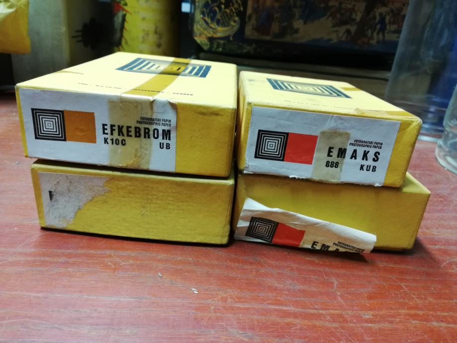Fotokemika, 4 kartonske kutije za Emaks fotopapir, 3 veće i 1 manja, neoštećene. U lot ide i kutija filma.