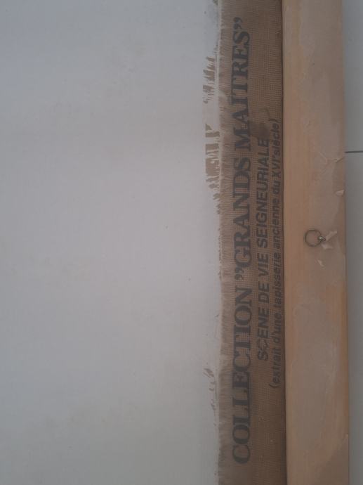 "COLLECTION 'GRANDS MAITRES' SCENE DE VIE SEIGNEURIALE (extrait d'une tapisserie ancienne du XVIe siècle)". Radi se o sceni iz života plemića, izvađenoj iz stare tapiserije iz 16. stoljeća, koja je dio kolekcije: “VELIKI MAJSTORI”