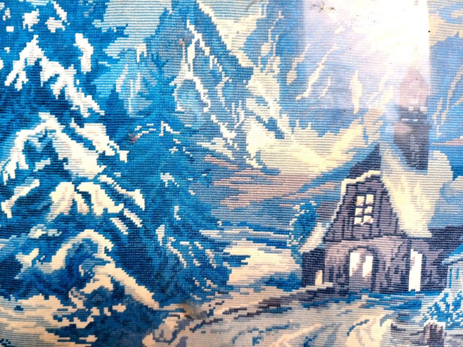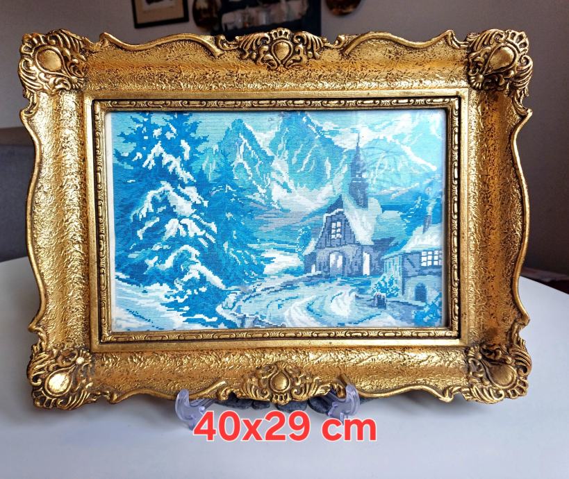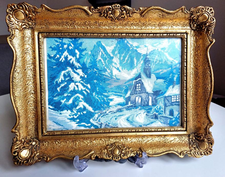 Predivan ručno vezen goblen , sitni bod, stanje besprijekorno.