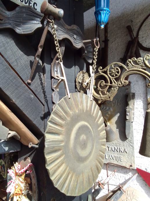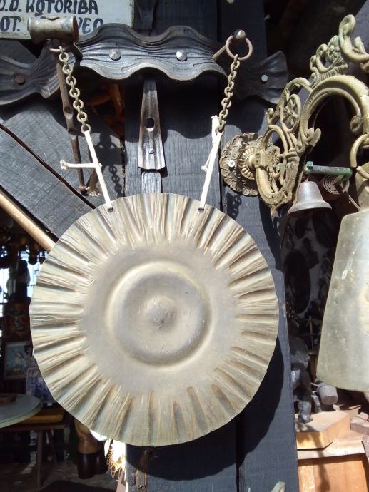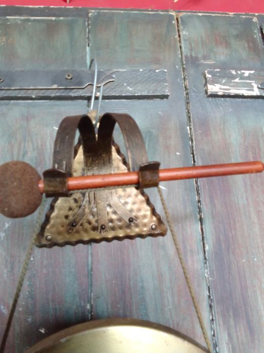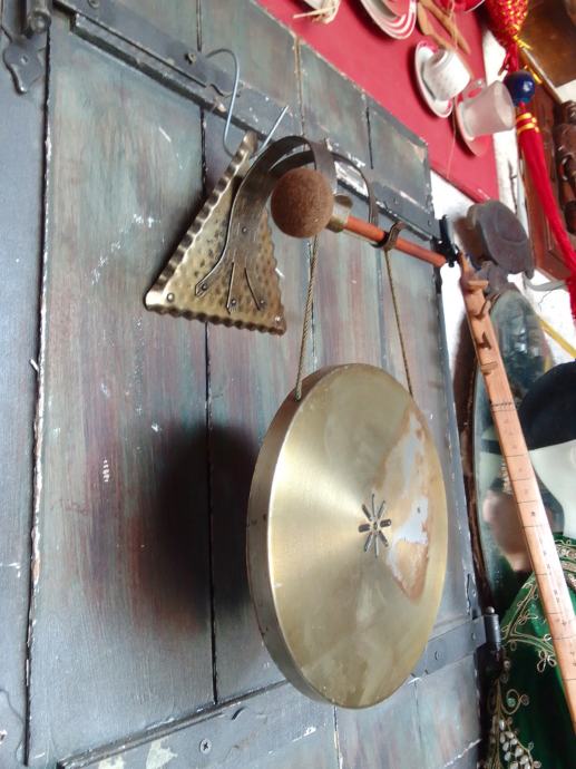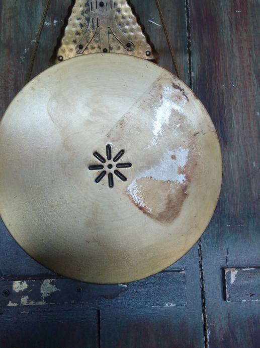 Metalni,dugo daje jeku,ukupna visina sa nosačem je 35cm,promjer gonga je 21cm,pogledajte moje ostale oglase stari a i antikviteta gdje imate još 2 gonga a imate i par slika na ovom oglasu