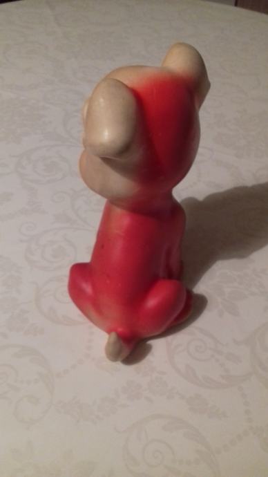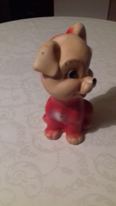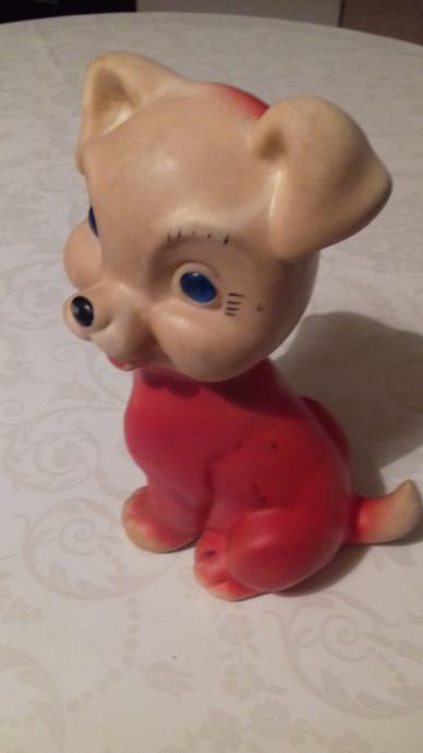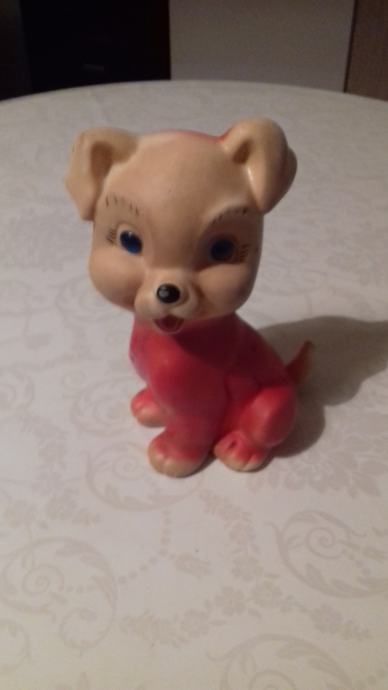 Prodaje se stara gumena igračka pas Biserka Zagreb art 205. Igračka nema "čep" za stvaranje zvuka". Cijena igračke je 27 eura. Mogućnost osobnog preuzimanja u Zadru. Kontakt broj mobitela 091 131 10 36.