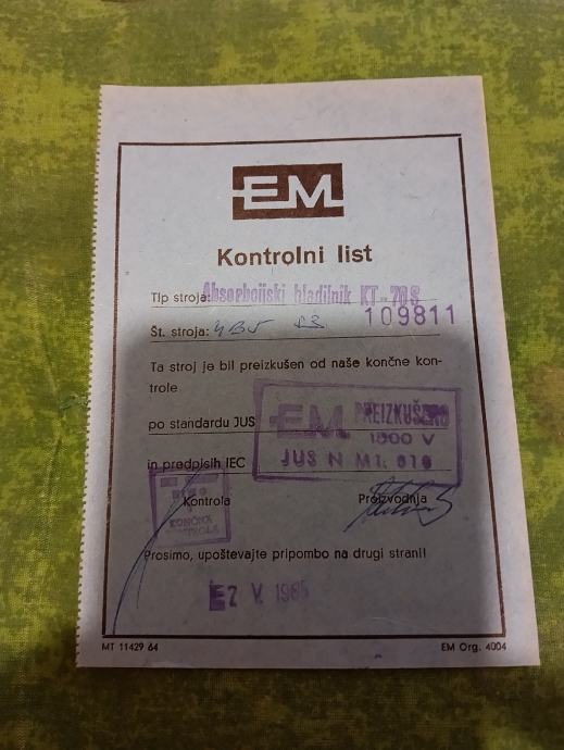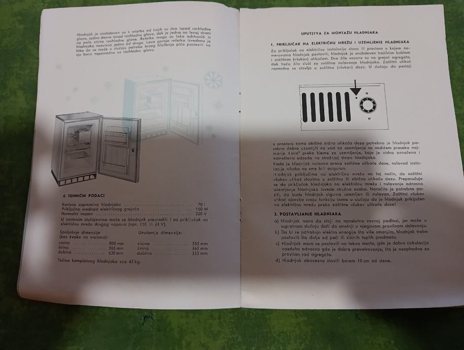 Prodajem staru brošuru za uporabu, letke, kontrolni i garancijski list na Hrvatskom i Slovenskom jeziku za hladnjak Himo kt-70s iz 1965g. Cijena za lot. Plačanje na račun ili gotovina.