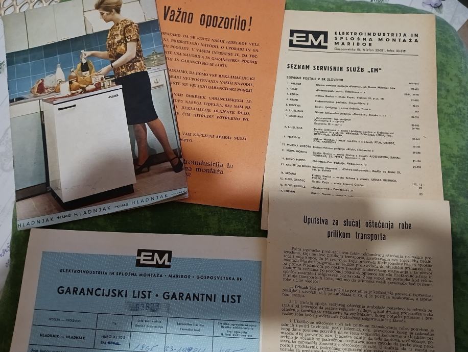 Hladnjak, Himo kt-70s, stara brošura, letci i garancijski list iz 1965