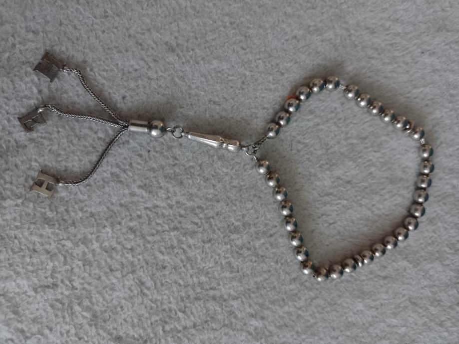 33 zrna. Srebro. Dosta stara. islamska brojanica, poznata i kao tesbih ili subha, koja se koristi za brojanje recitacija tijekom molitve.