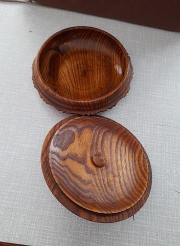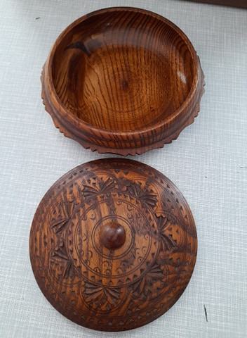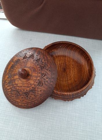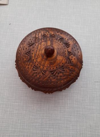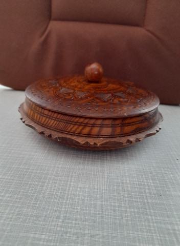 izrezbarena starinska drvena kutija za sve, krug 15 cm, vidi slike