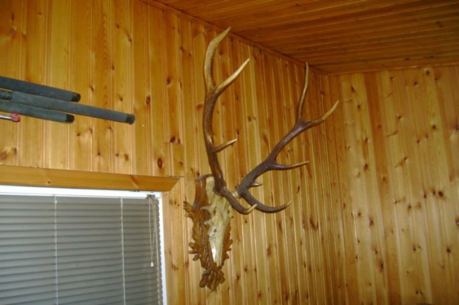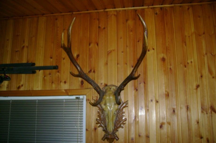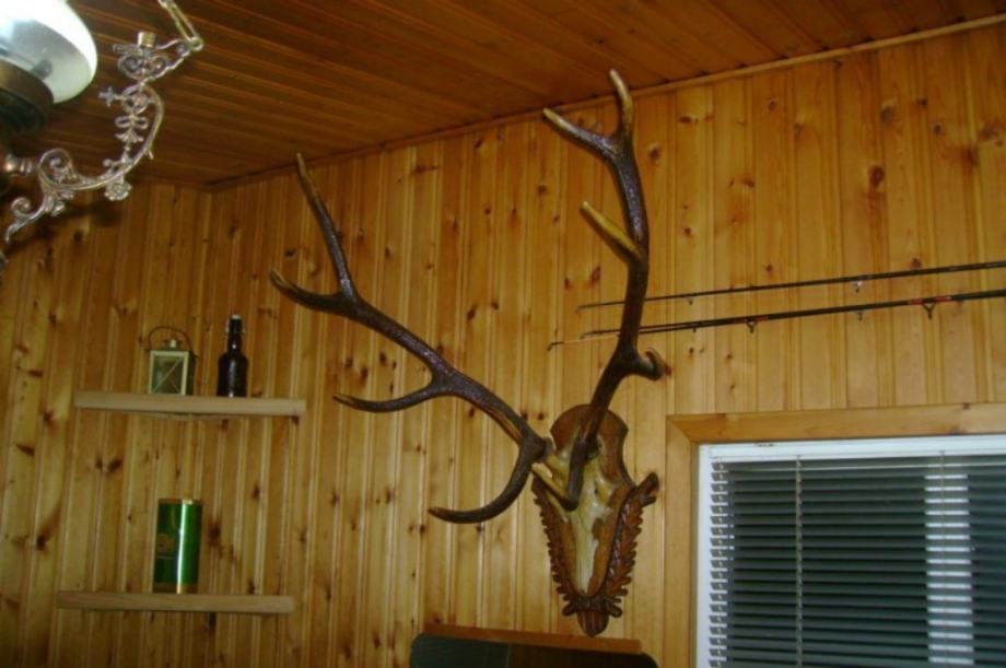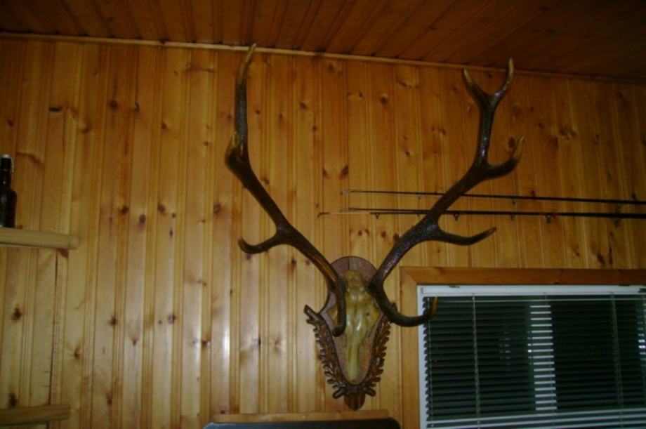 Jelenski rogovi na atraktivnom, rezbarenom hrastovom podlošku , ukras za konobe , tarase , vikendice ili brvnare , .... dva komada !!!!