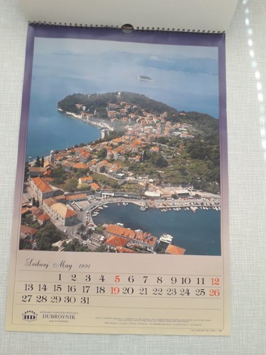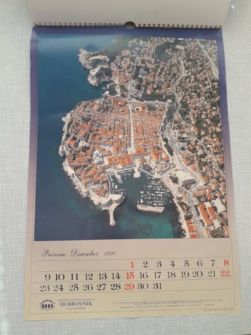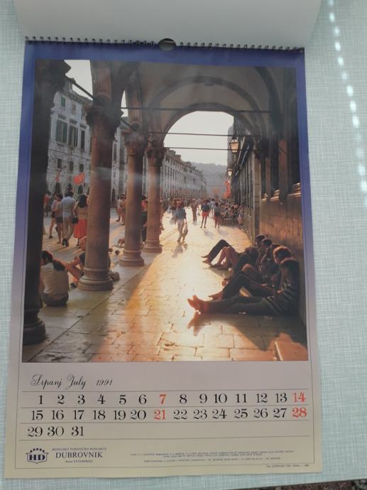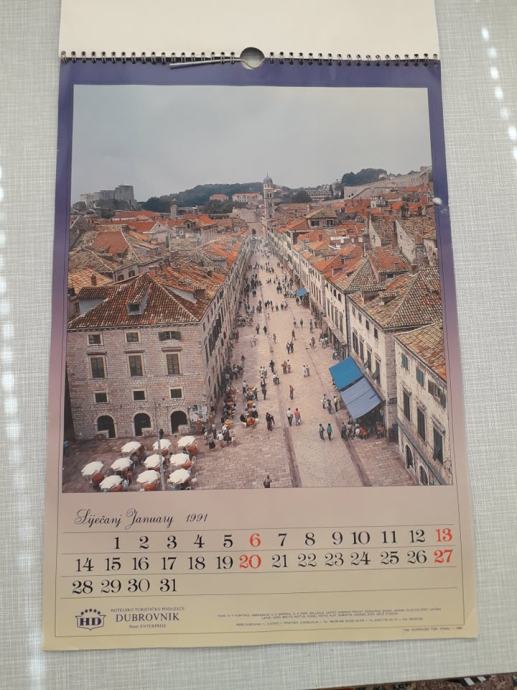 zidni kalendar iz 1991. godine, svaki mjesec prikazuje jednu sliku grada od prije rata