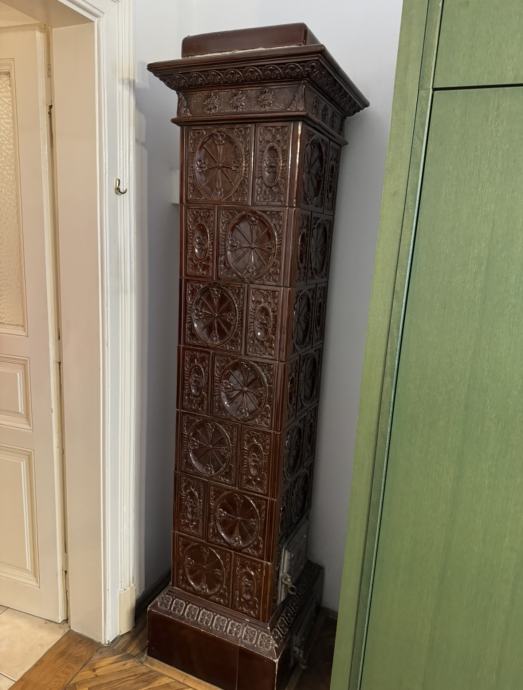 Prodaje se starinska kaljeva peć koja se nalazi u stanu u prizemlju starije zgrade u centru Zagreba. Peć je vizualno u vrlo dobrom stanju – keramičke pločice su glazirane i bogato ukrašene, bez vidljivih oštećenja. Idealna za ljubitelje tradicionalnog stila ili kao dekorativni element u prostoru.