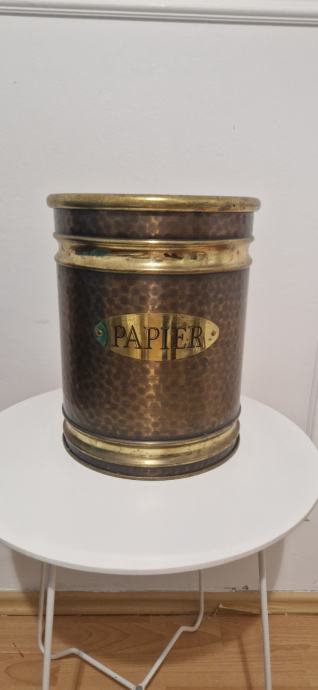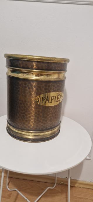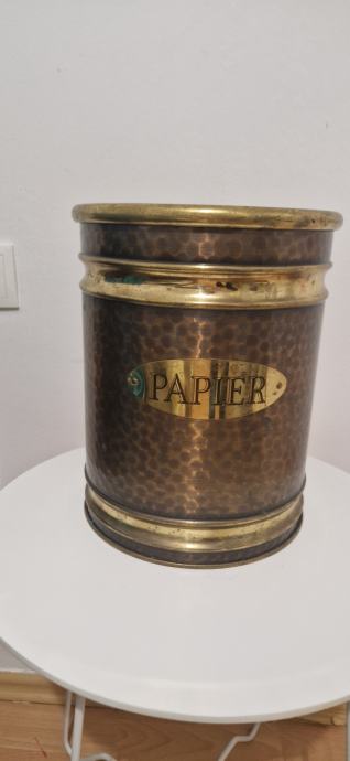 Kanta za papir izrađena od bakra ,ukrašena mesinganim obručima i natpisom od mesinga.