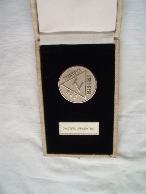 srebrna medalja koju je dobila URO KOrana Karlovac od GRO N Karlovac povodom 40 godina rada, 1945-1985, Ikom Zagreb, promjer 5,5 cm