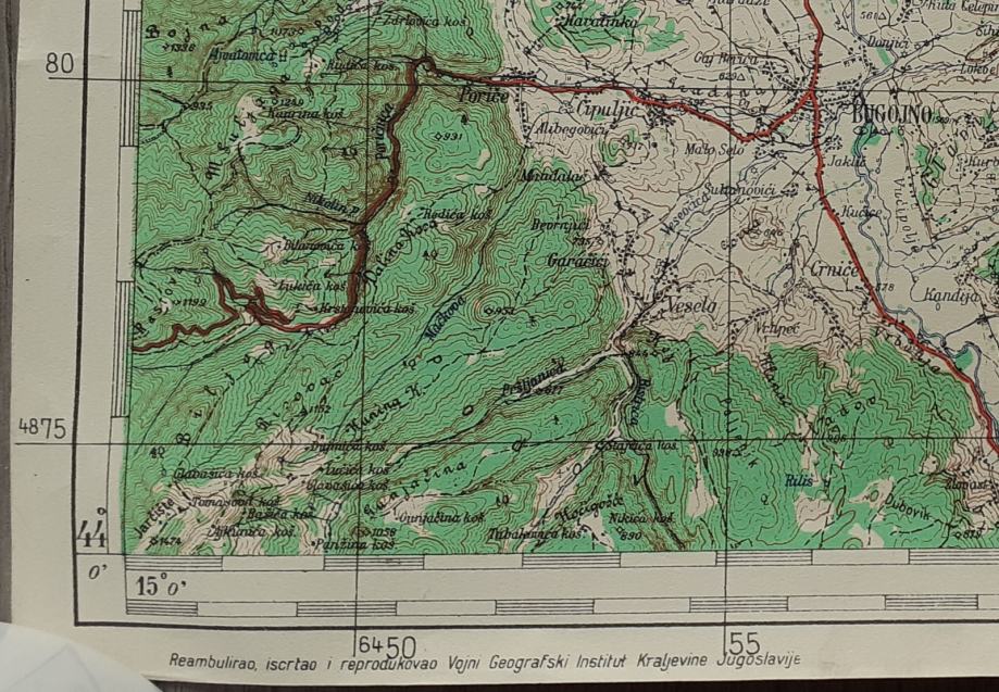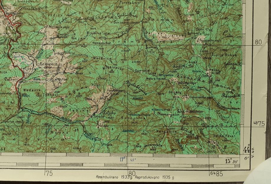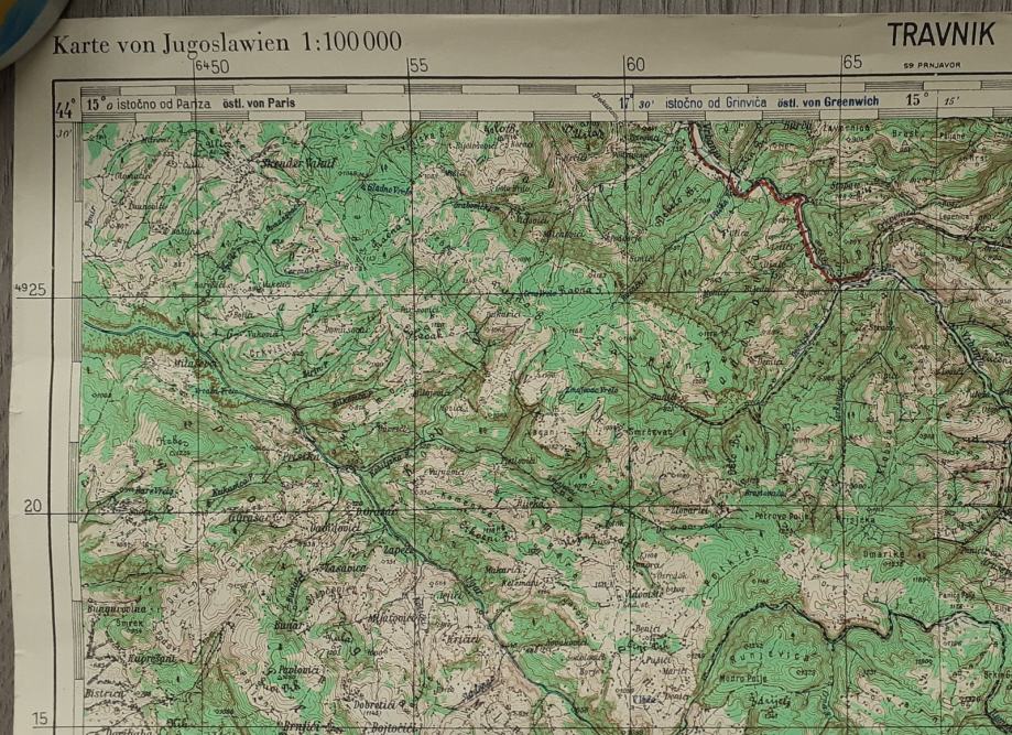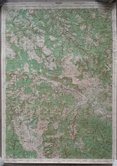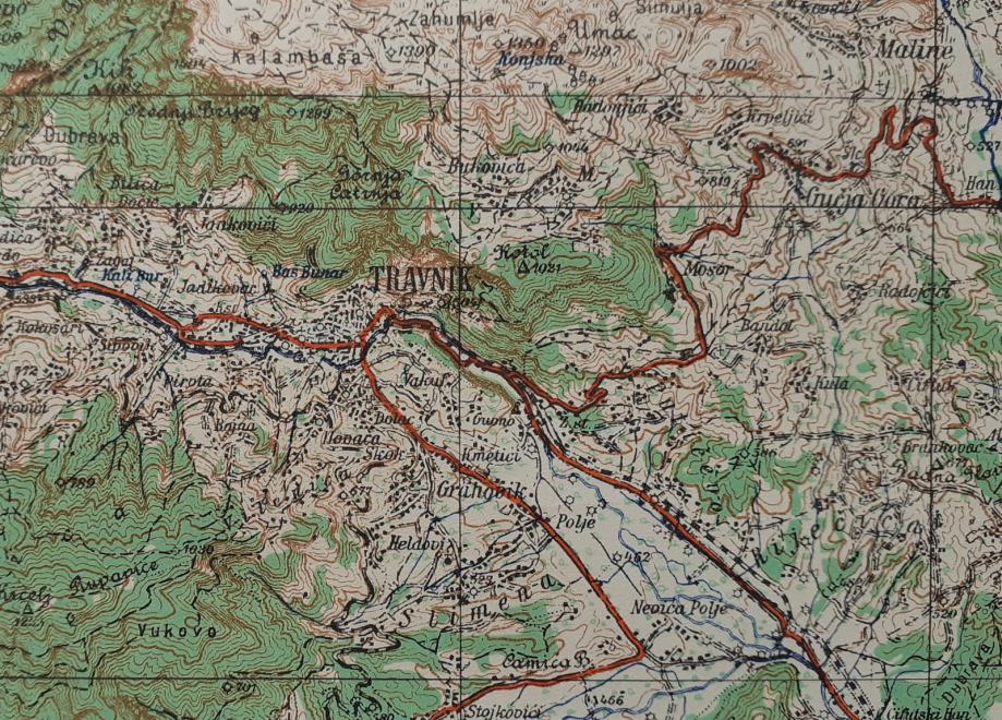 topografska karta Travnika i regije iz 1935.godine u mjerilu 1:100000
