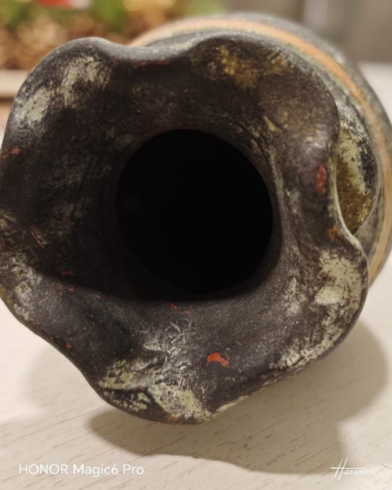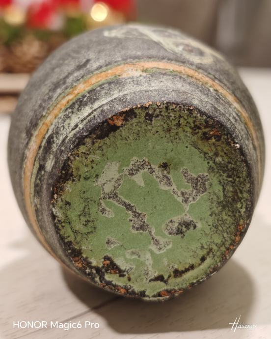 Stil: Dizajn je starinski ili etno stila, podsjeća na tradicionalnu, ručno rađenu grnčariju.