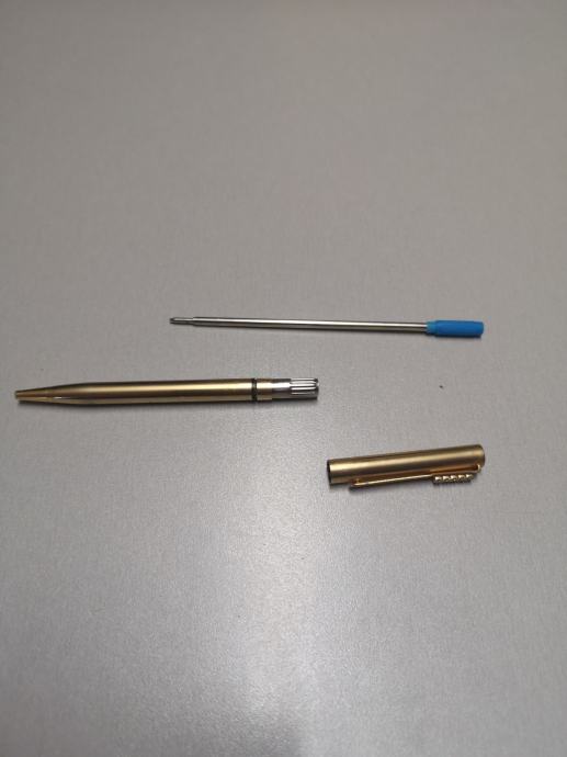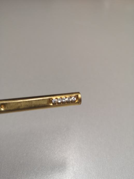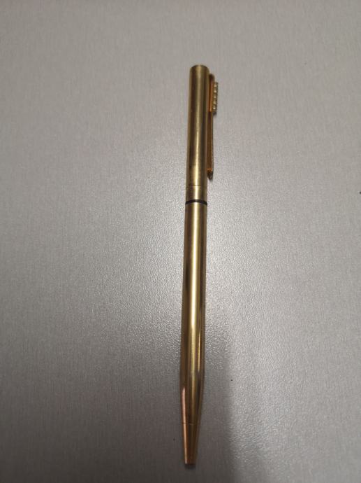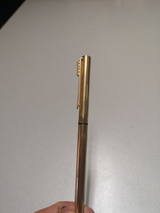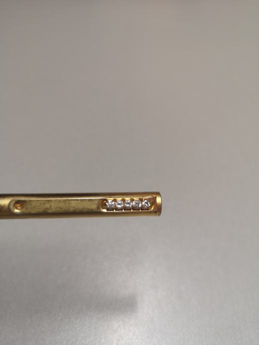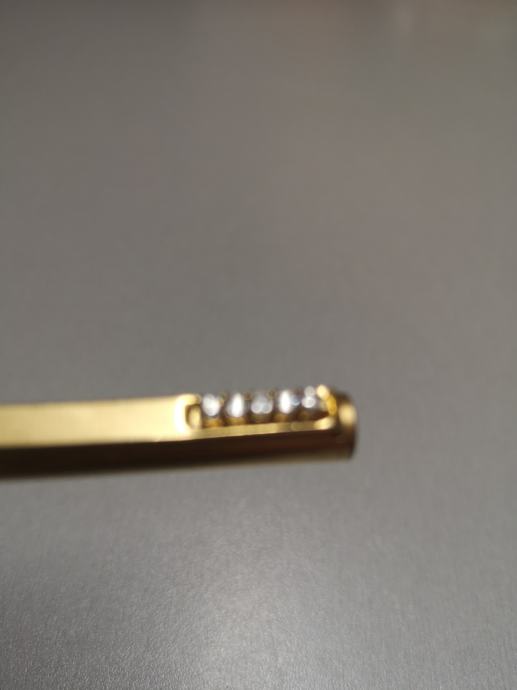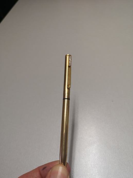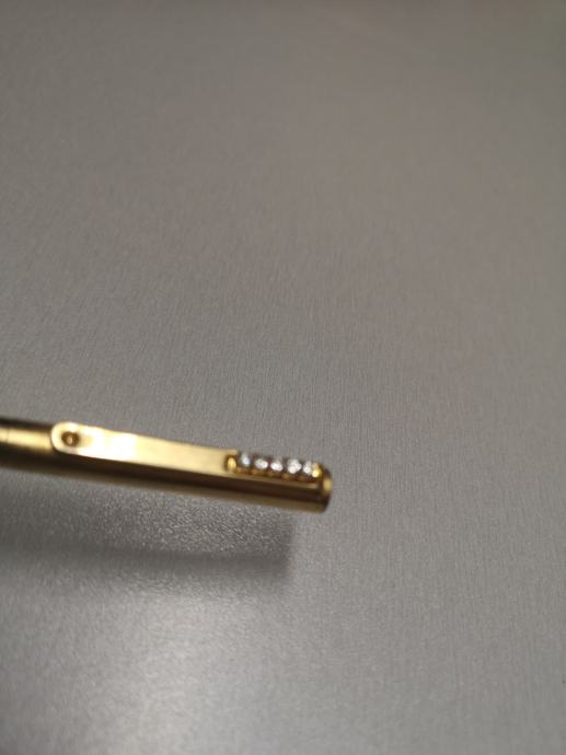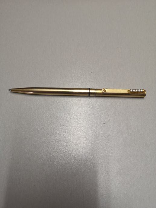 Na prodaju predivna kemijska olovka zlatne boje sa pet cirkona.Olovka je pogodna za dame .