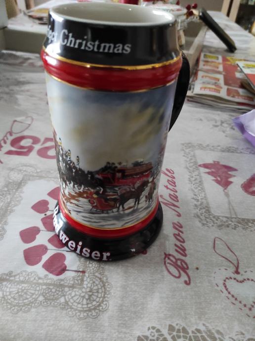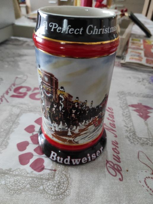 Prodajem staru keramičku kriglo 0,5 lit. novogodišnji motiv Budweiser.