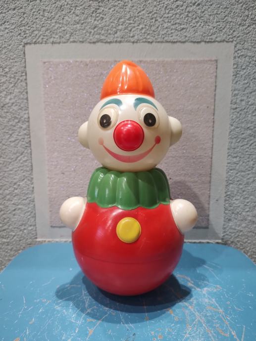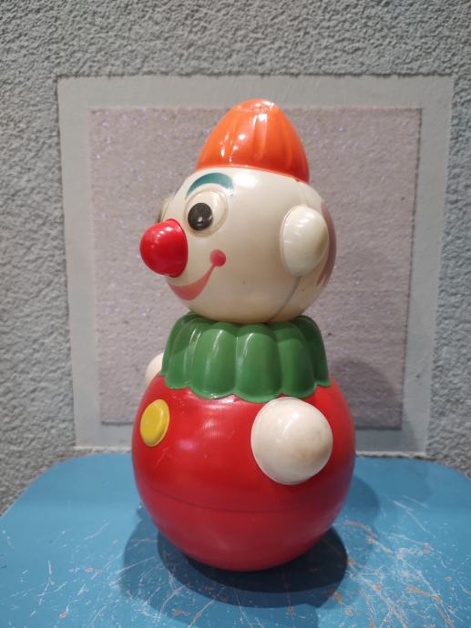 igračka u obliku klauna poznata kao "nevaljaška" ili "roly-poly" lutka, koja se njiše i proizvodi zvukove iz 1960-ih g. Kolekcionarski primjerak. Proizvodi zvukove i svijetli kada se pritisne šešir, te se pomiče u svim smjerovina. Materijal: Plastika. Visina: 29 cm, promjer 19 cm. Stanje: sačuvano, iz privatne kolekcije.
