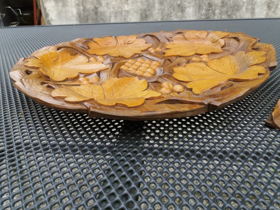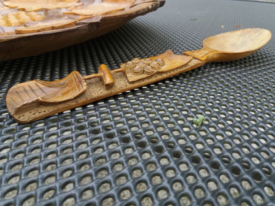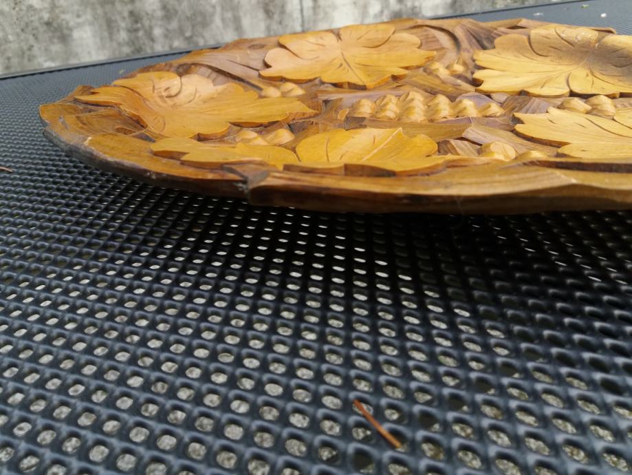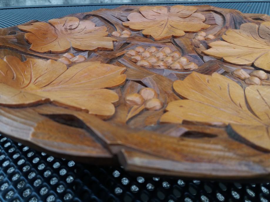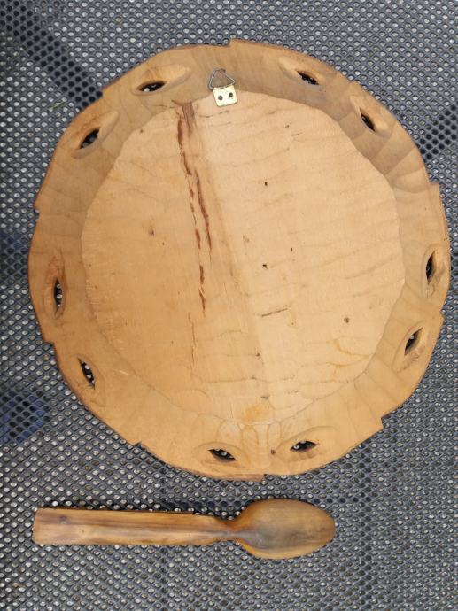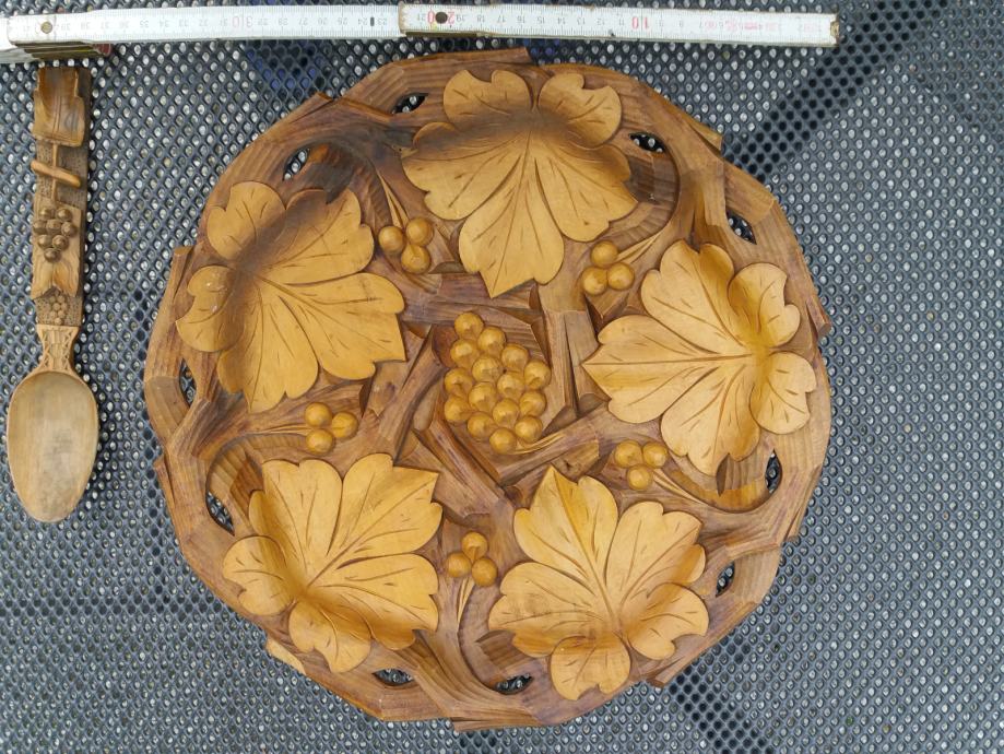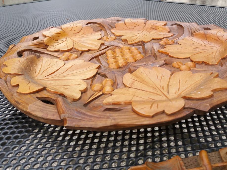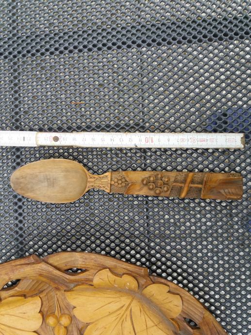 Klet vinograd rezbareni drveni tanjur i žlica ručni rad loza grožđe