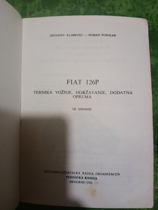 Prodajem knjigu Fiat 126 ( tehnika vožnje, održavanje, dodatna oprema) Zbignjeva Klimeckog i Romana Podolaka, trece izdanje, 226 stranica, tehnička knjiga Beograd 1981. Plačanje na račun ili gotovina.