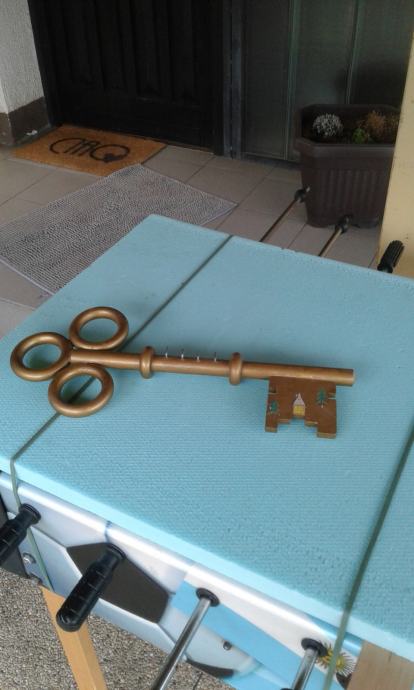 Ključ za vješanje ključeva . Dužina je 46 cm . Cijena je 5 eura .