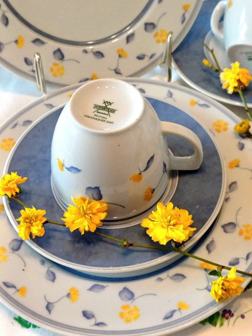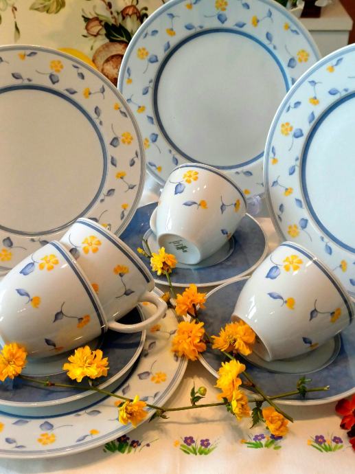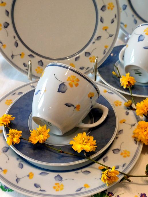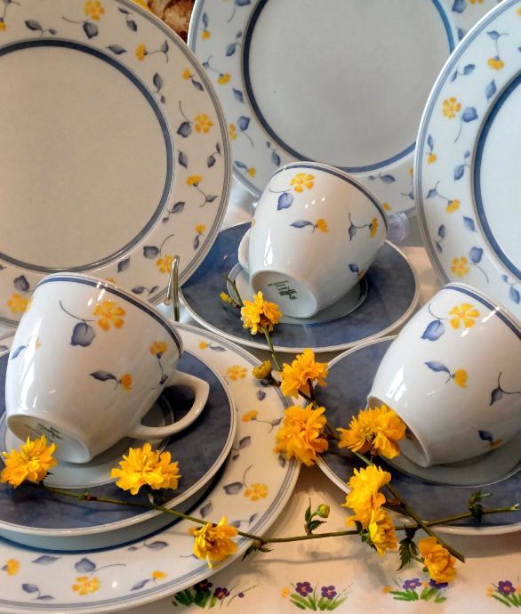 Prodjelni setovi za doručak. Jedan set se sastoji od šalice podtanjura i desertog tanjura. Cijena 15 eura komad.