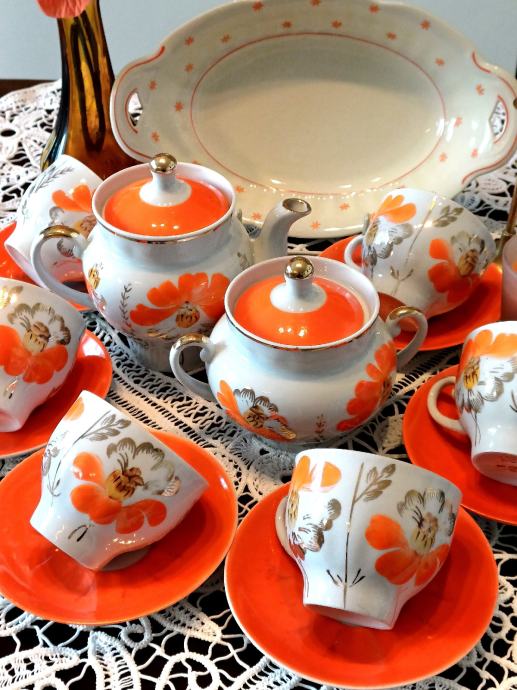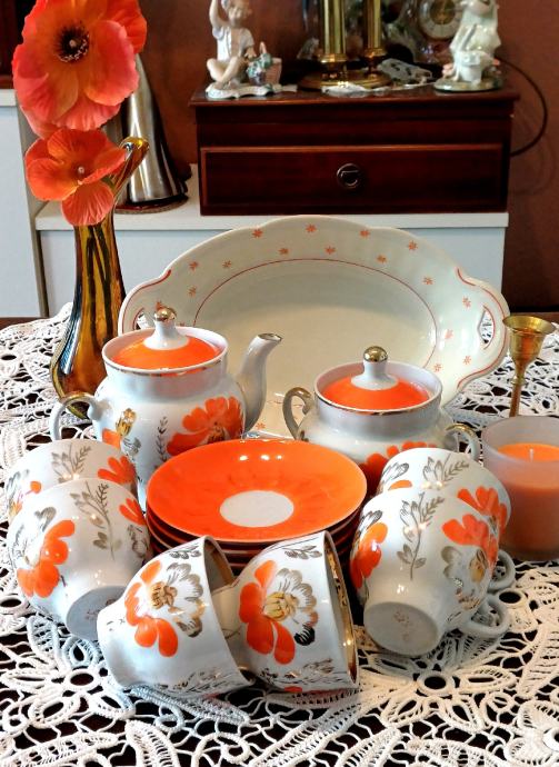 Baranovsky porculan SSSR iz sedamdesetih godina prošlog stoljeća. Motiv cvijet pamuka. Stanje izvrsno, osim što ranjurici ponegdje imaju diskretno vidljive tragove vremena. Cijena 100 eura