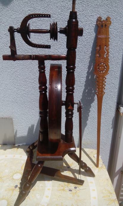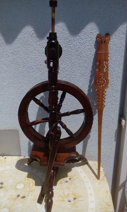 Jako, jako stari i ušćuvani kolovrat visine 110 cm. Kompletan i funkcionalan. Bez crvotočine. U izvrstnom stanju.