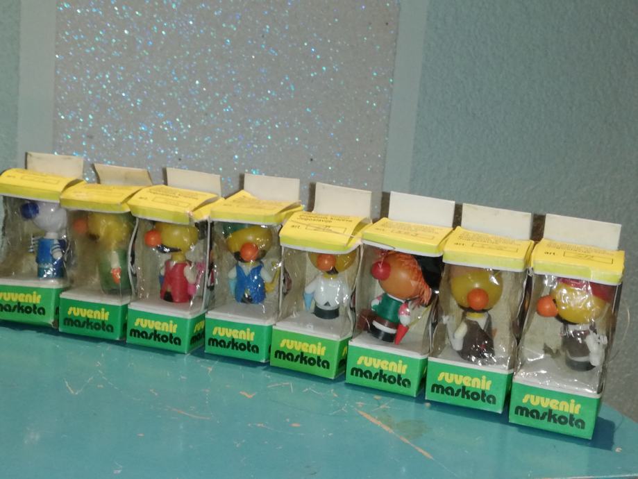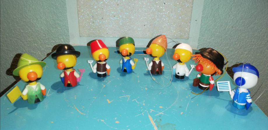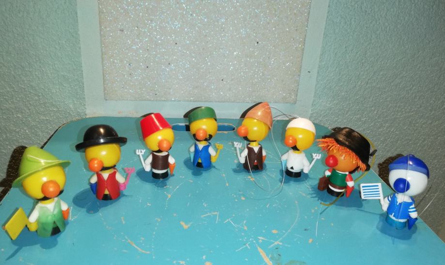 Kompasove maskote, lot od 8 Kompas ovih privjesaka u originalnim kutijama: Slovenac, Hrvat, Bosanac, Srbijanac, Makedonac, Albanac, Grk, i Kompasov Janez. Sve u odličnom stanju, iz privatne kolekcije.