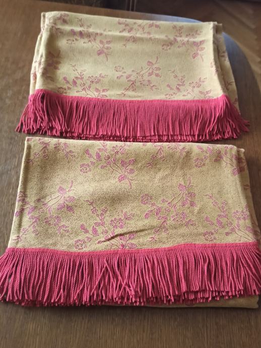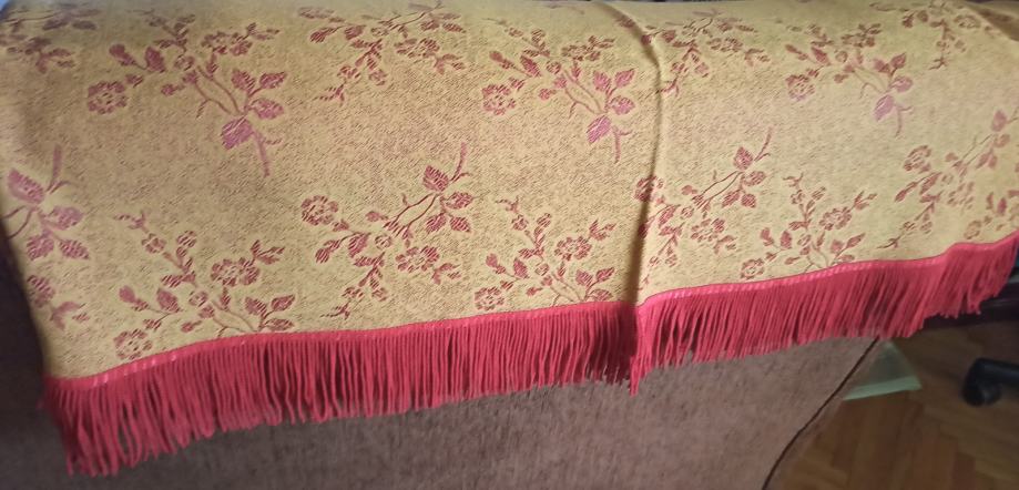 Prodajem komplet od dva jednaka prekrivača sa uzorkom i resama za krevet ili za kauče. Radi svog lijepog dezena od njih bi se mogle sašiti prikladne marame za narodnu nošnju. Vrlo malo korišteno, u odličnom stanju.