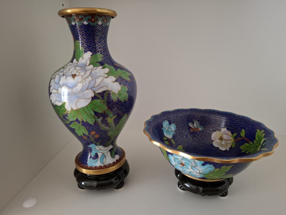 Kineska vaza i zdjelica izrađena u cloisonne tehnici (tradicionalna metoda ukrašavanja metalnih predmeta emajlom).