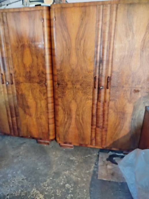 Prodajemo komplet starinskog namještaja - ručni rad, a sastoji se od: dva ormara, komoda sa ogledalom, okrugli stolić i dvije stolice.