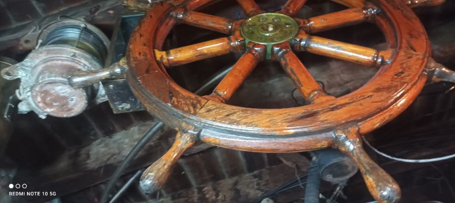 Kormilo..preko svega 90cm,rijedak orginalni primjerak,težak preko 20-ak kg.neznam starost (preko 100g.),vide se vremenski tragovi.Sviježe lakiran adekvatnim lakom...Može i zamjena za nešto od stare nautike u protuvrijednosti...Vrijedi pogledat !