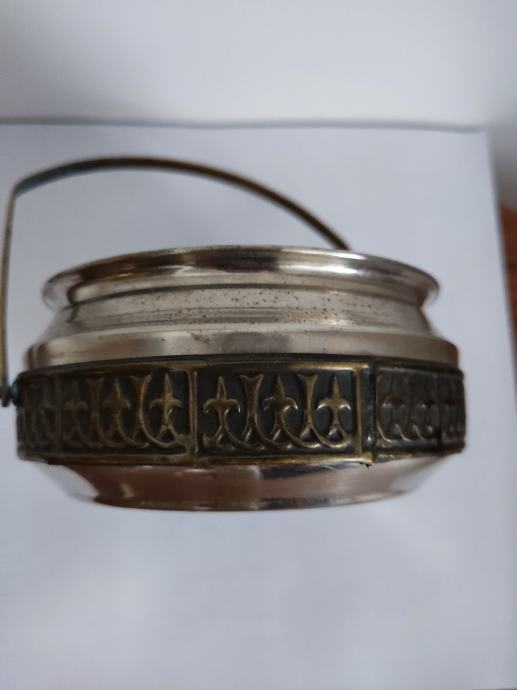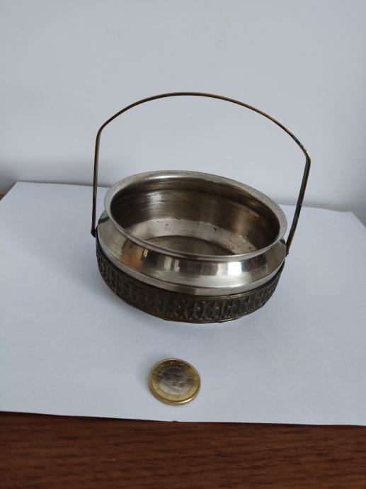 Kosarica za bombone. Material nepoznat, najvjerojatnije posrebreno.Promjer 10 cm.