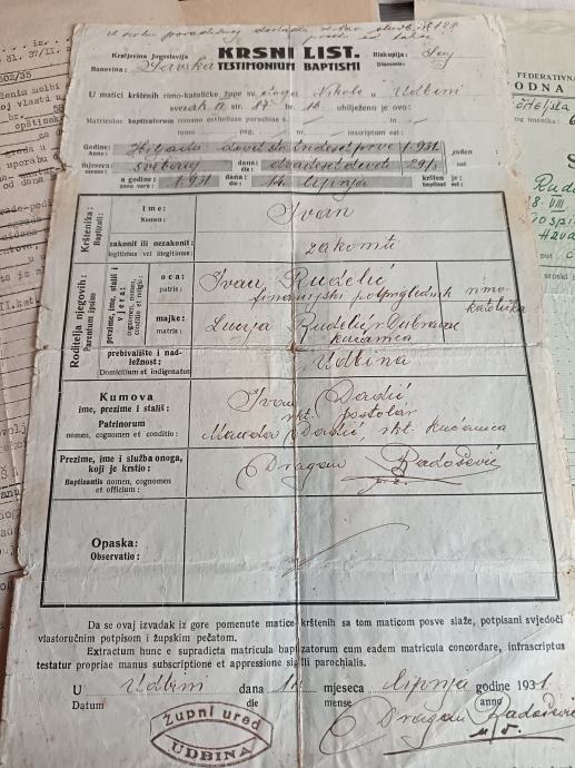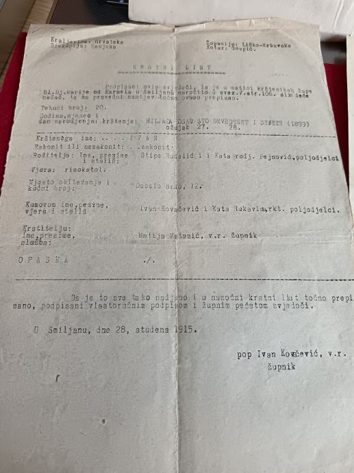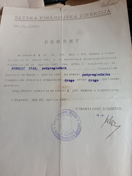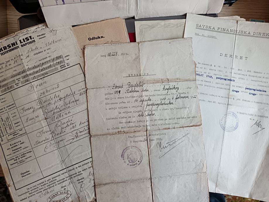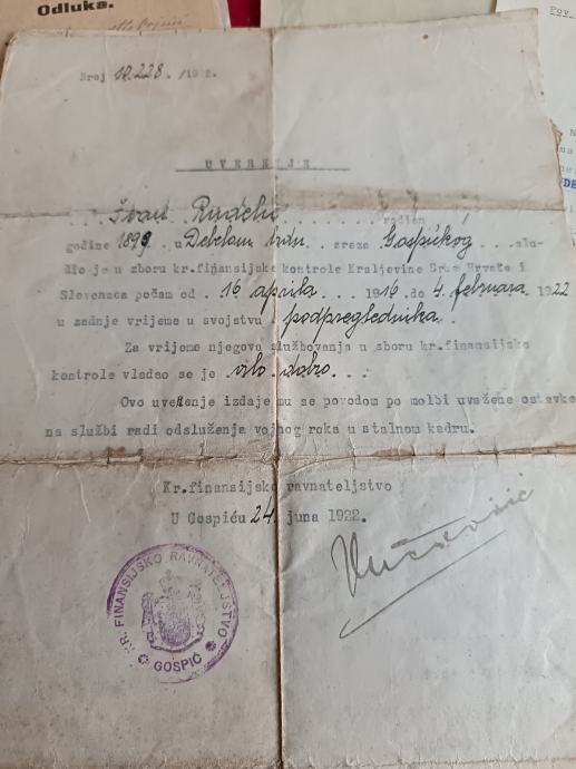 U ponudi je fascikl dokumenata financijskog podpreglednika iz Gospića. Zanimljivi službeni žigovi Gospića i župnog ureda u Udbini.
