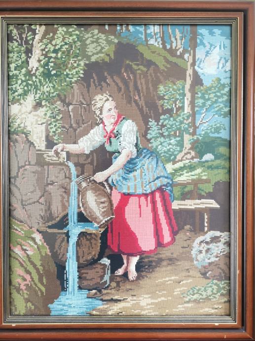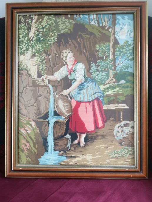 "DJEVOJKA NA ZDENCU" -ORIGINAL WILEROV GOBLEN - sve original.. platno.. sematski prikaz.. konci..i drugo.. naruceno od Wilera iz Njemacke..moram to naglasiti jer vidim u ponudi da mnogi napisu da je Wiler a zapravo nije.. Ovo je besprijekorno.. uredno uradjen prekrasan rad.. prekrasna slika
