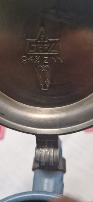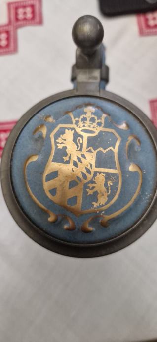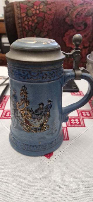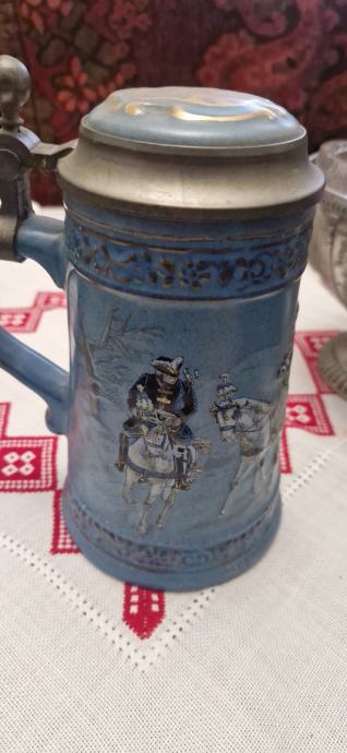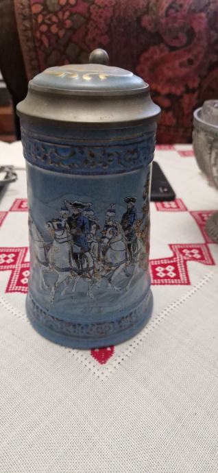 Gerzova krigla za pivo s poklopcem, plavi motiv kralja Ludwiga s konjskom zapregom - Zapadna Njemačka