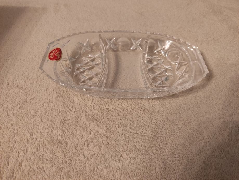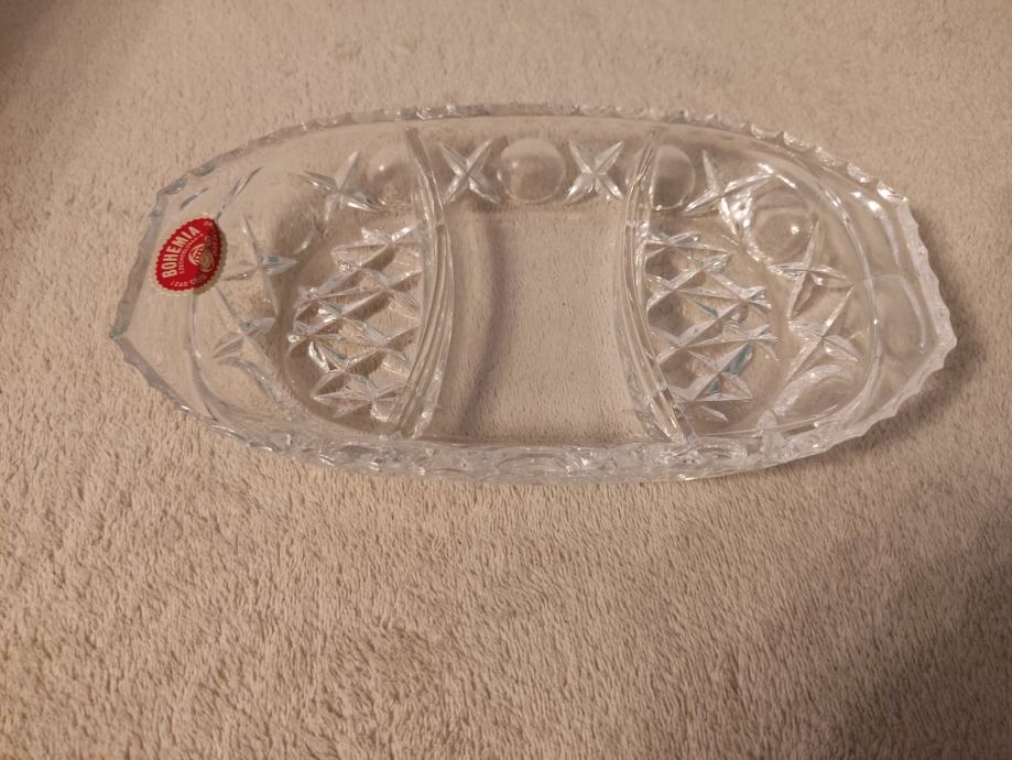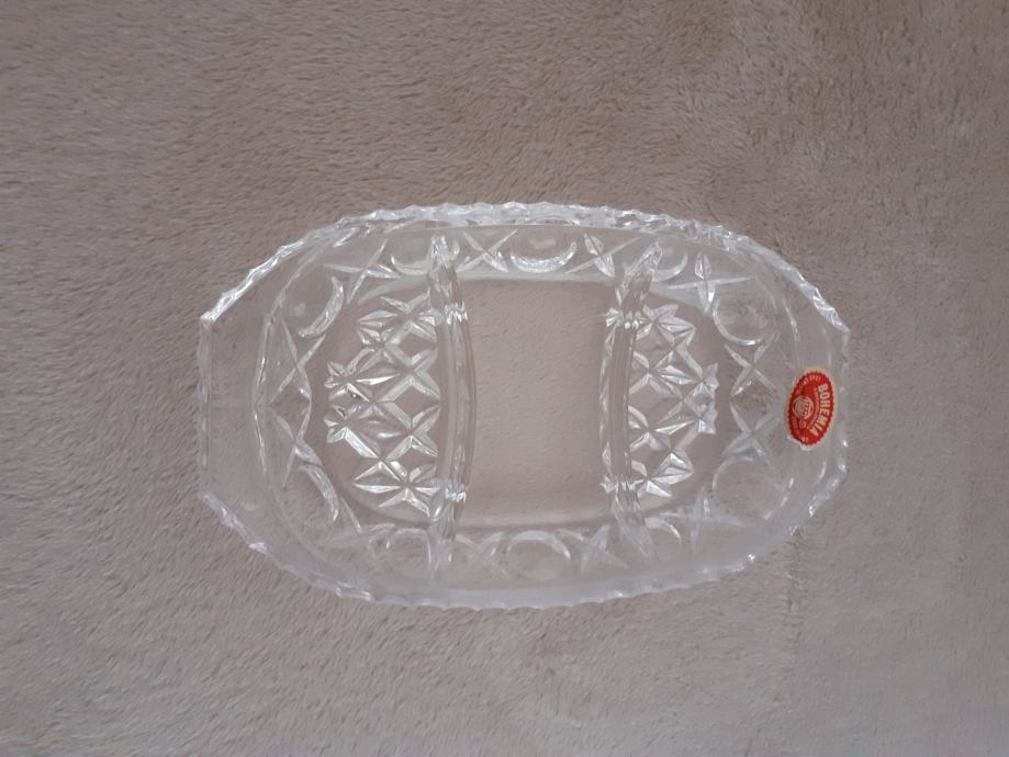 Kvalitetna kristalna zdjelica s tri odjeljka. Bohemia kristal. U izvrsnom stanju, nekorištena. U Zagrebu i Karlovcu moguća je primopredaja. Pogledajte i ostale moje oglase, na više kupljenih stvari popust.