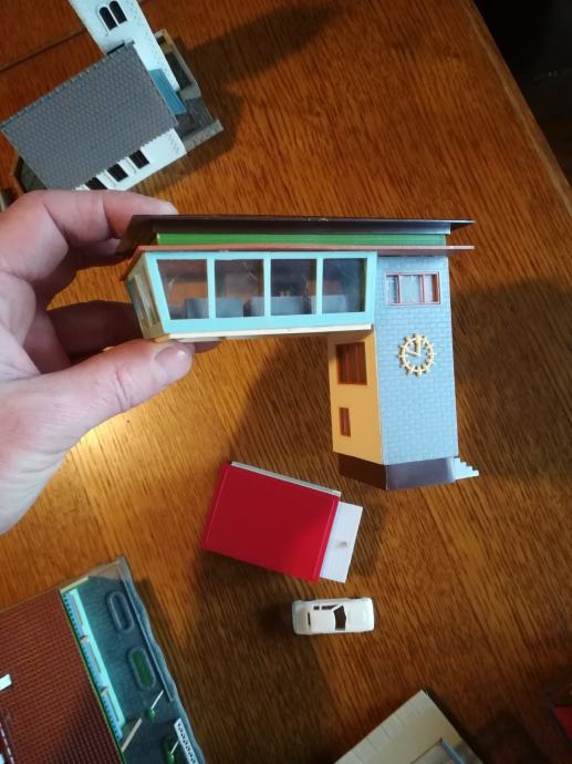 Igračka starinske kućice, mostovi i figurice za maketu. Mjerilo HO. Cijene pojedinačno: figurice 26e, skretničarski znak 20e, stanica 12e, kućica 15e, pansion Garni 20e, garaža i auto 7e, most 1kom 10e, crkva 30e, nadzorni toranj 16e, mala stanica 5e, mala stanica za teret 5e. Sve u kompletu košta 120e. Cijena je fiksna. Na sms nemogu odgovoriti, najbolje bi bilo da me nazovete 099 687 5657 ili pošaljete poruku preko Njuškala. Vlak vlakić željeznica lokomotiva tračnice vagoni isl su u mojim ostalim oglasima.