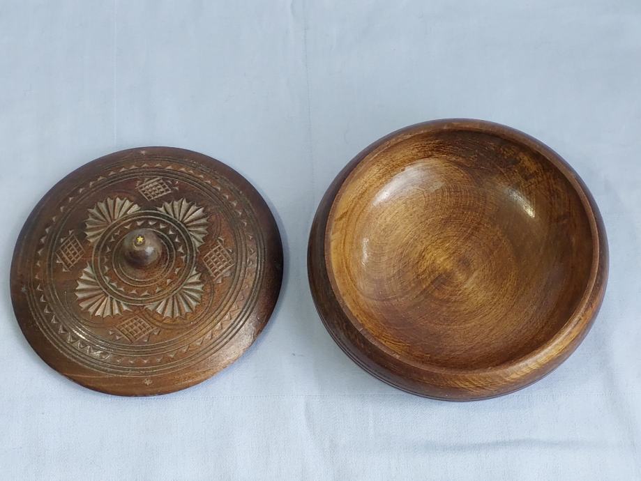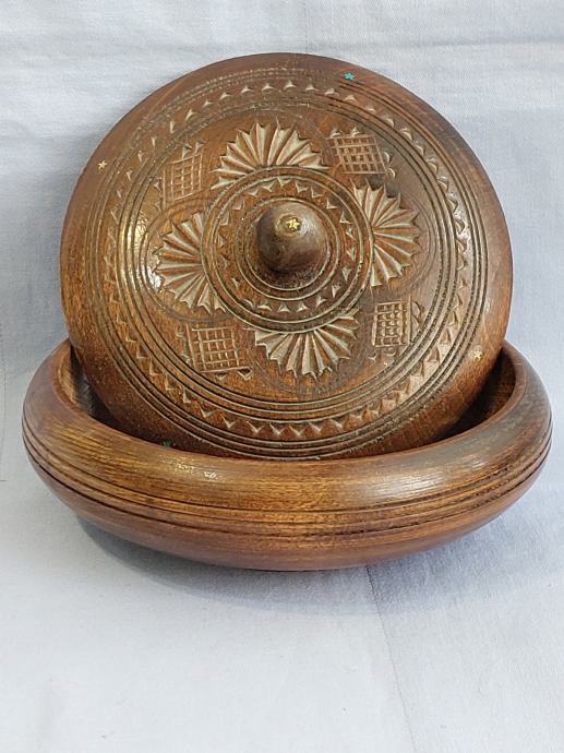 Izrađena od tvrdog drveta. Rad rezbarenja izveden ručno.