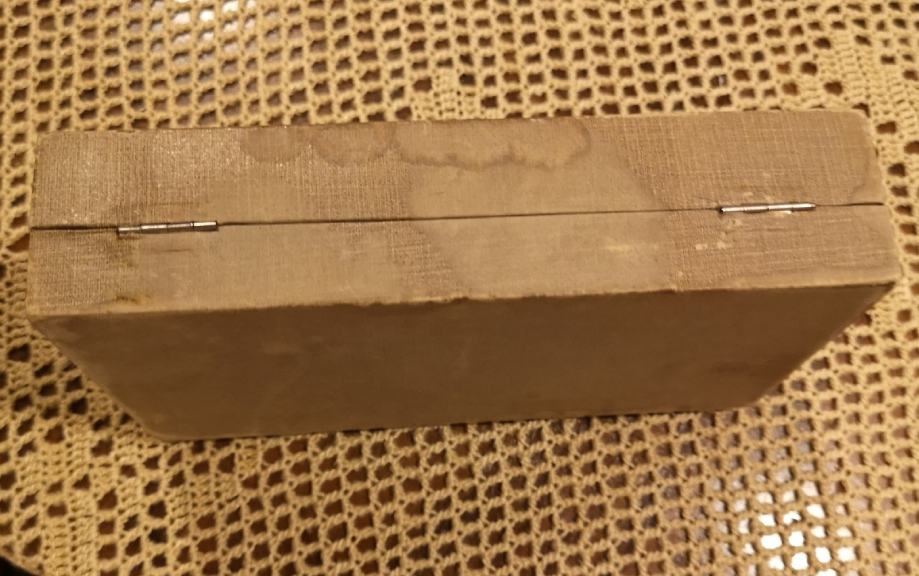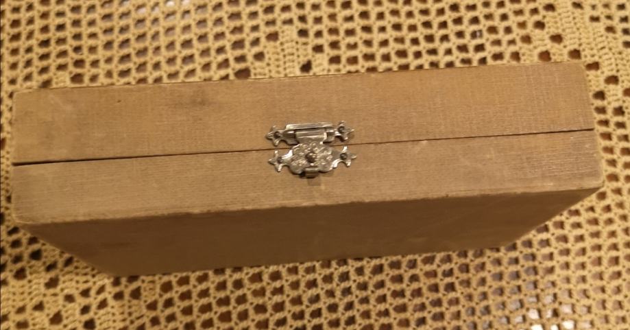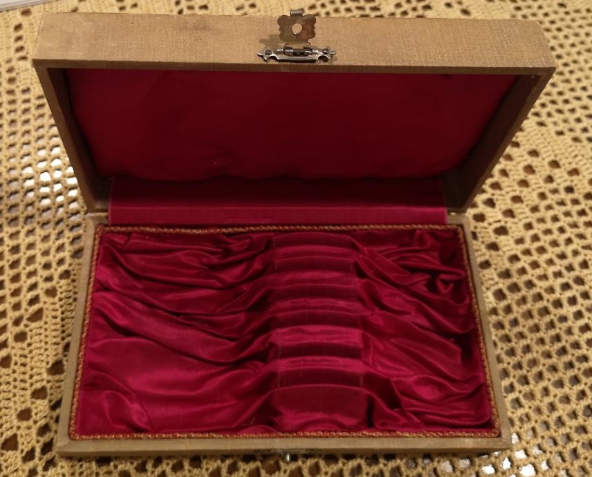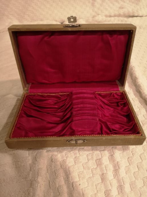 Uscuvana kutija iz 1900-tih za srebrne zlice ili vilice duge cca 14-15 cm.. Kutija je bez ostecenja.. sa vidnim tragom vremena ( pogledati fotografije).. Dimenzije : 17 x 10 x 4 cm ( zlica u kutiji je samo za primjer).. Nazvati : 099 557 00 00..hvala