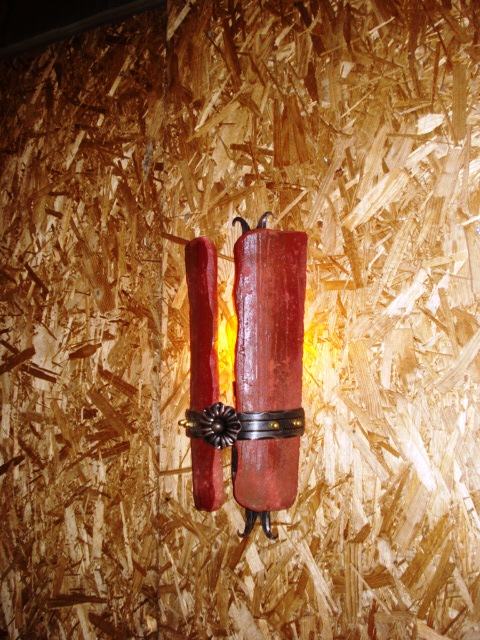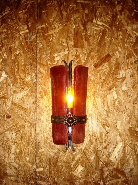 Unikatna lampa od kovanog željeza i starog crijepa.