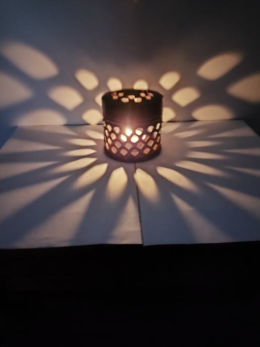 Vintage metalna lampica za lučicu. Promjer 9 cm, visina 9 cm.