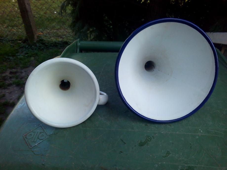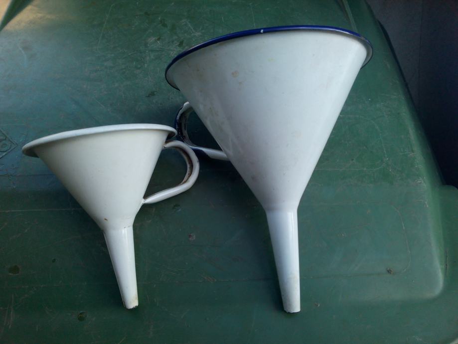 Dva stara emajlirana lijevka.Bez oštečenja.