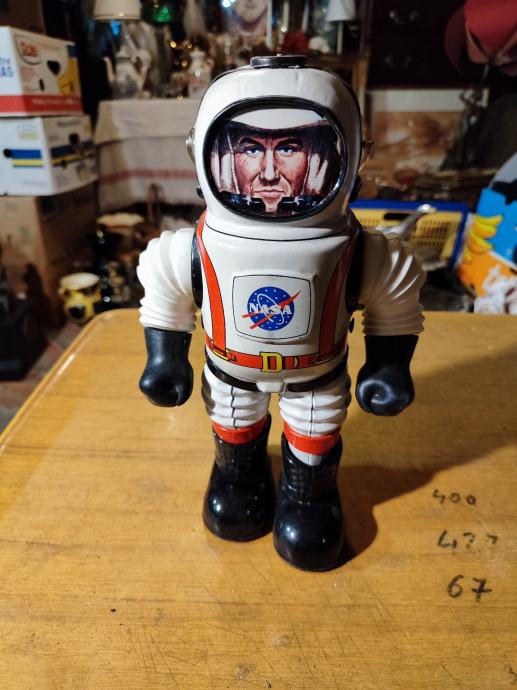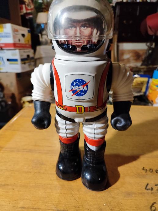 Dizajn: Prikazuje astronauta u svemirskom odijelu s logotipom NASA-e na prsima i prozirnom kacigom koja otkriva lice.