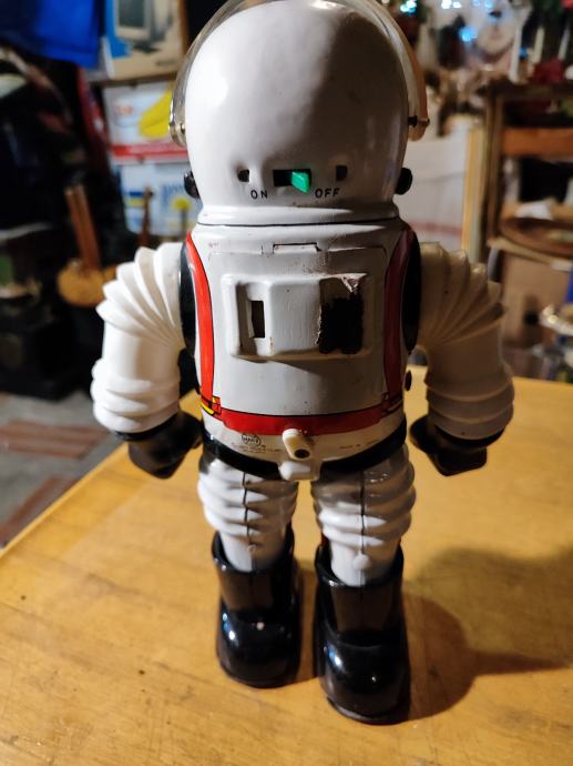 Značajke: Izrađen je od lima i plastike s mehanizmom na baterije koji omogućuje robotu hodanje.