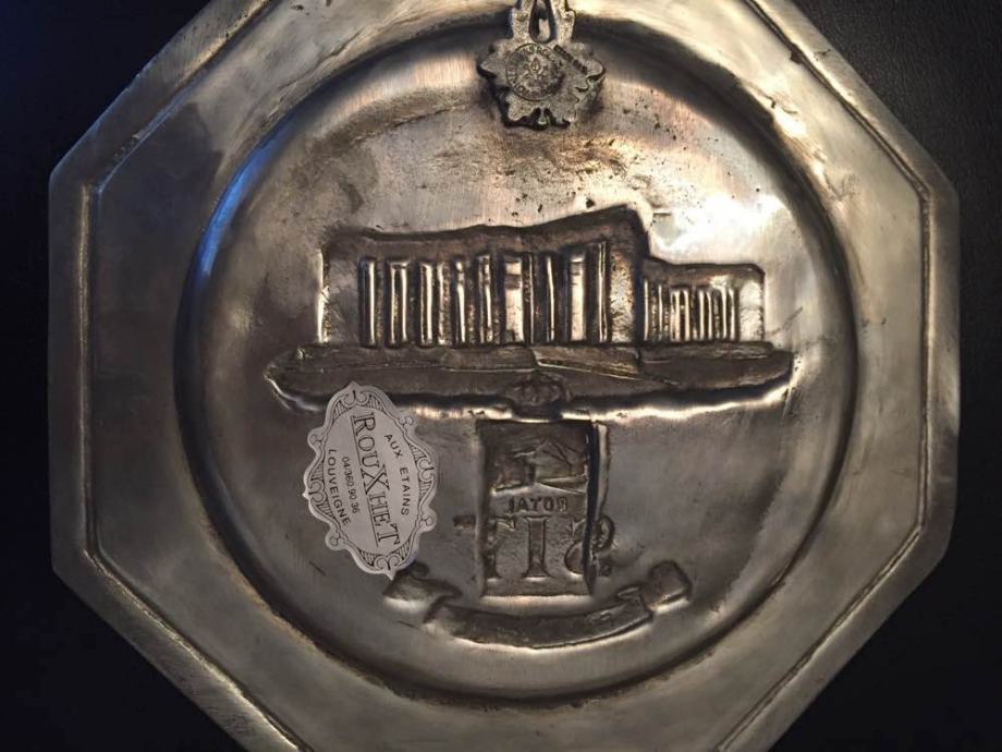 Mjed etain 85% ..ukrasni zidni tanjur. ručni rad ...Liege Belgija