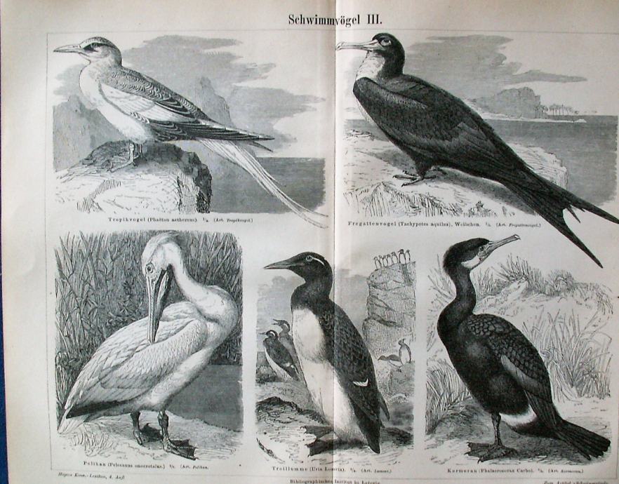 LITOGRAFIJA - MORSKE PTICE KORMORAN PELIKAN ORNITOLOGIJA ZOOLOGIJA