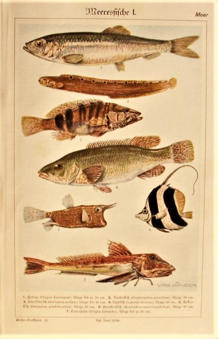 LITOGRAFIJA - MORSKE RIBE MORE RIBOLOV SRDELA RIBARSTVO IHTIOLOGIJA