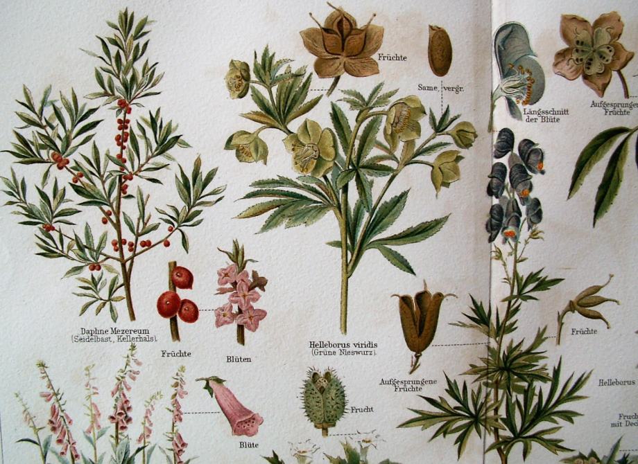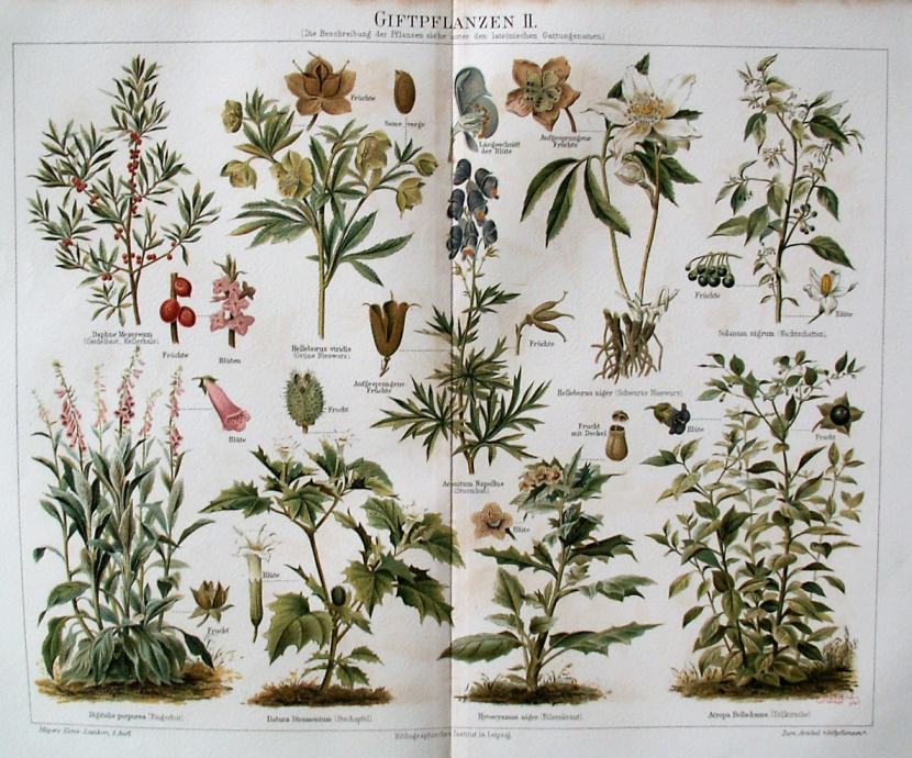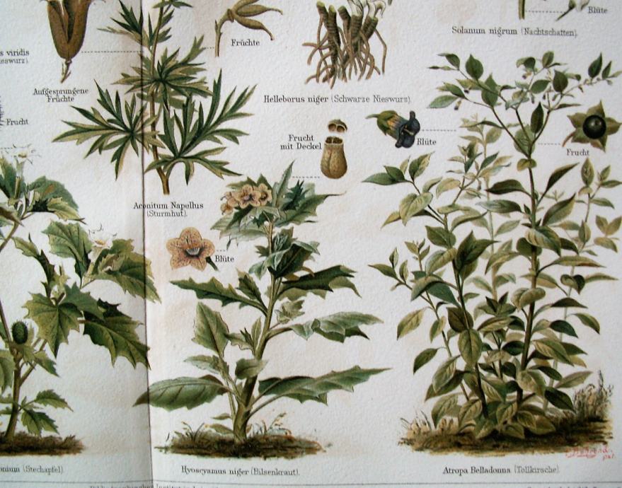 LITOGRAFIJA - PRIRODA TRAVE OTROVNE BILJKE BOTANIKA CVIJEČE OTROV
